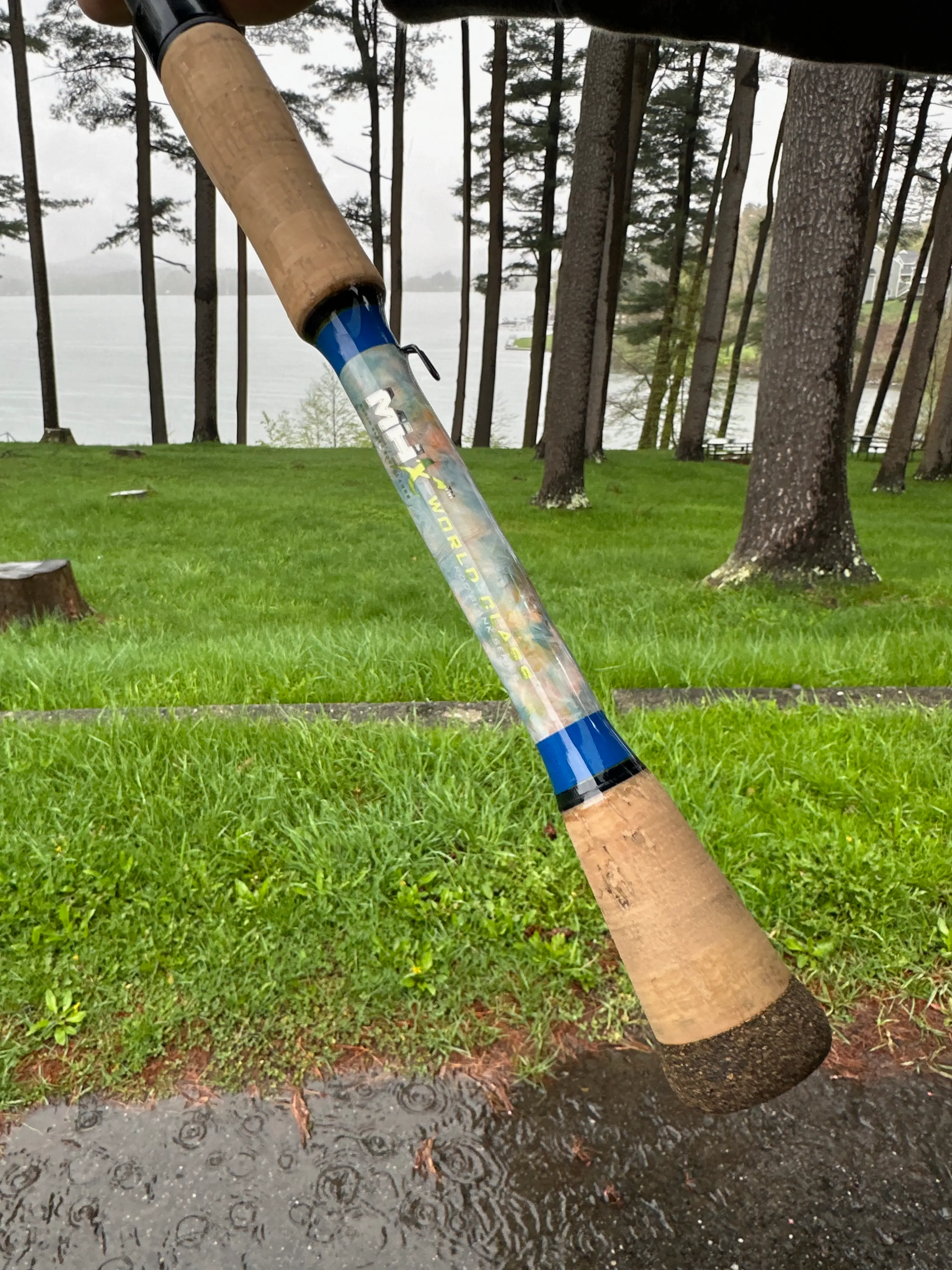 Unique jimmy fund color-inspired marbled butt section, cork split grip handle